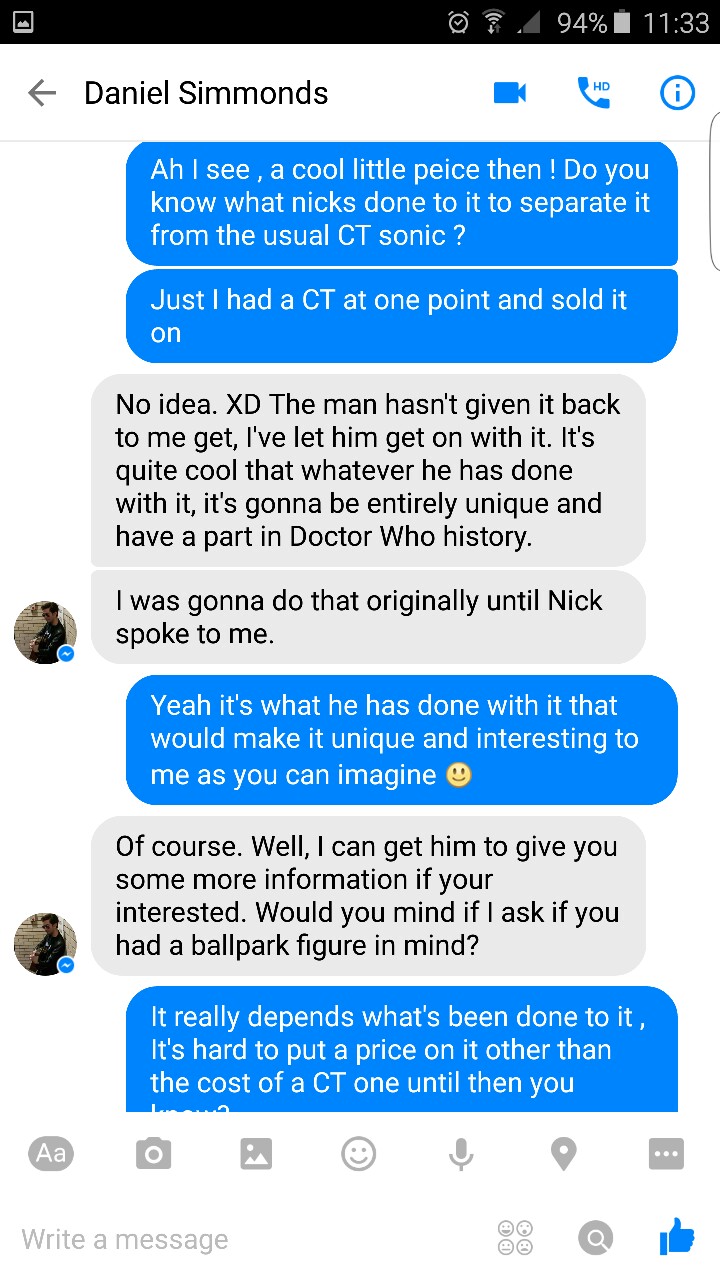 To dispel any further confusion, the RE is a Series Four ‘B-Prop’ replica. This was the prop that CT took reference from—including scans and extensive images—as soon as filming was finished with it on The Eleventh Hour. It was originally made out of parts from the Cream Aztec, given to Eccleston in 2005. The prop has changed hands since and been scanned again (we’re aware), but our reference comes from a much earlier point in the prop’s lifetime.