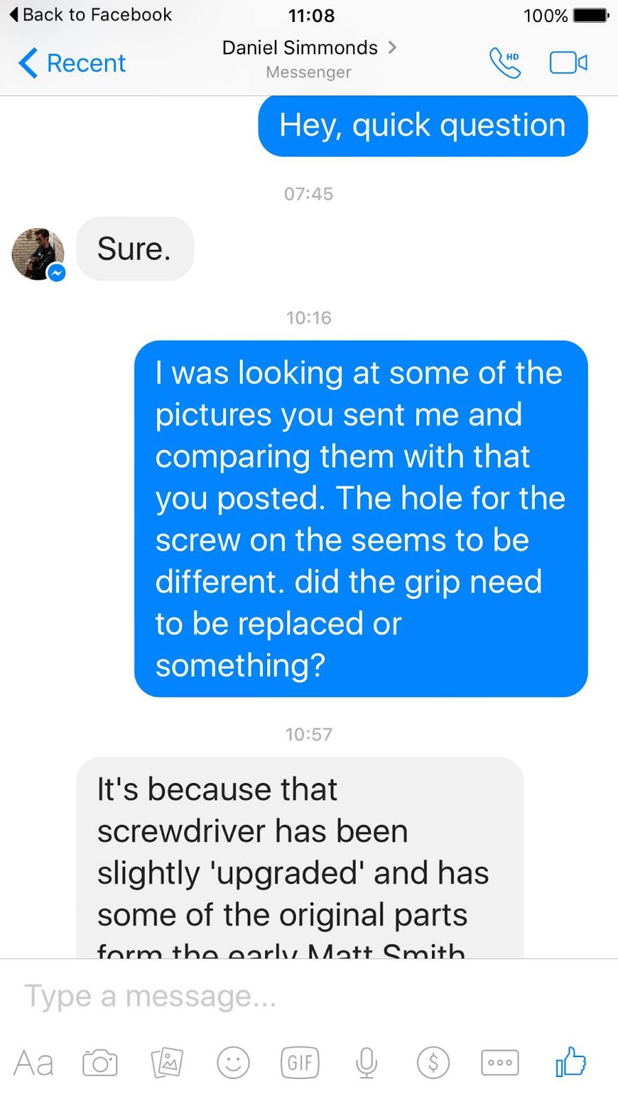 So, what does this mean, you ask? It means that every detail has been painstakingly recreated to deliver a product that both looks and feels like the prop Tennant and Smith had in hand. It’s had some dimensional and detail refinements over the UE, it’s lighter, a bit more wobbly, and would generally be recognised by either actor as “that’s the prop I held,” not “that’s a nice replica.” We want to give you the experience of holding and owning THE actual filming prop here.