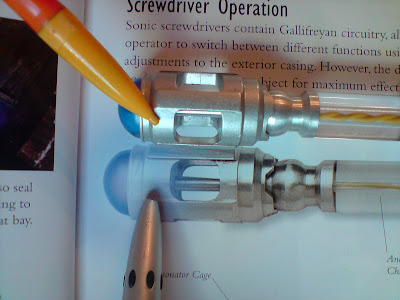 The MFX sonic screwdriver has been two years in the making and was vaunted as a 'screen accurate' 1:1 replica of one of the screen used hero props. The initial shots of the protoypes were very, very promising and at least one of the prototypes was virtually 100% in terms of details (though there was still room for improvement). As can be seen here:
