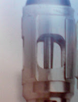 The pencil is pointing to the join I refer to. There is also a join on the upper part of the inner recess too. This is where the ball join screws into the emitter head cage. Here is the head without the emitter cage screwed in: