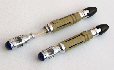 3.    In early October they release their final production versions. What they delivered differed vastly from not only the reference prop, but also their prototype above. The main differences are detailed here: http://celestialtoystore.blogspot.com/2009/10/analysis-of-mfx-sonic-screwdriver-and.html. It is immediately obvious that visually, the production versions differed substantially to what was promised but it is only to someone like me who has measured and detailed a filming prop and has detailed dims, apparent just how different it was. The data presented in the above blog can be independently verified by anyone with some Verniers and Photoshop.