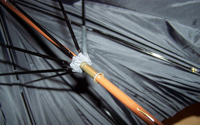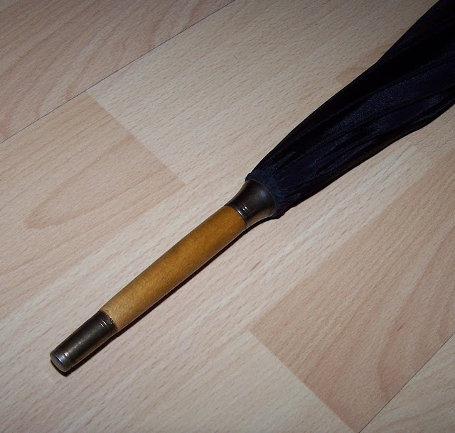 The umbrella has been a project that I've not really had the heart to tackle and finish mainly because of the difficulty in sourcing an umbrella that was 'just right'. This means the umbrella had to be to same vintage and model from the same maker as the original base umbrella used for the prop. Having an umbrella that was close just doesn't cut it and would put me in the same league as those idiot cosplayers out there. If I was to do it, it would be done right or not at all.