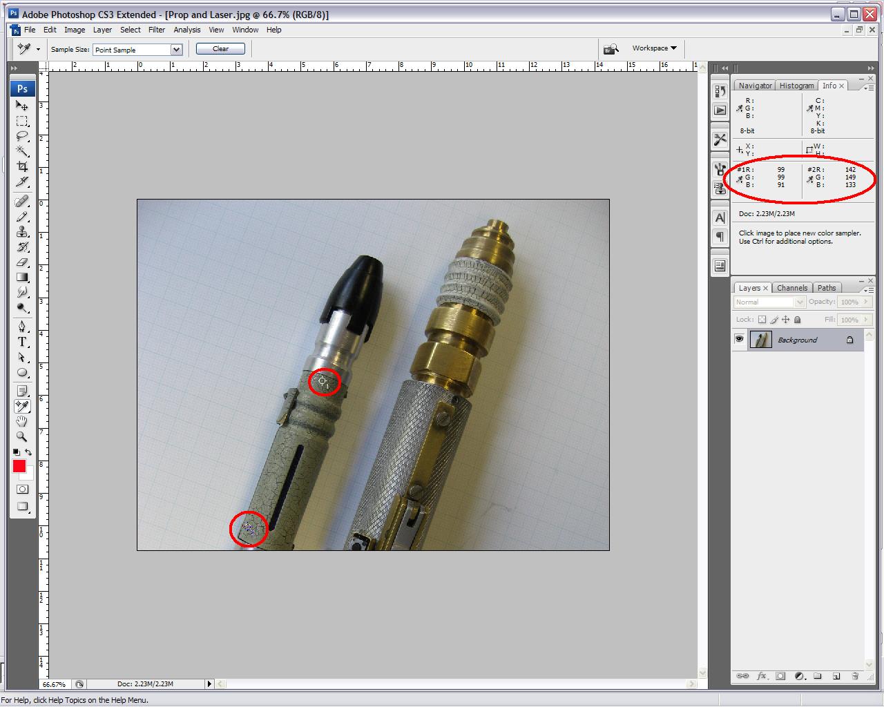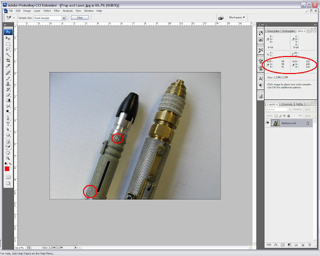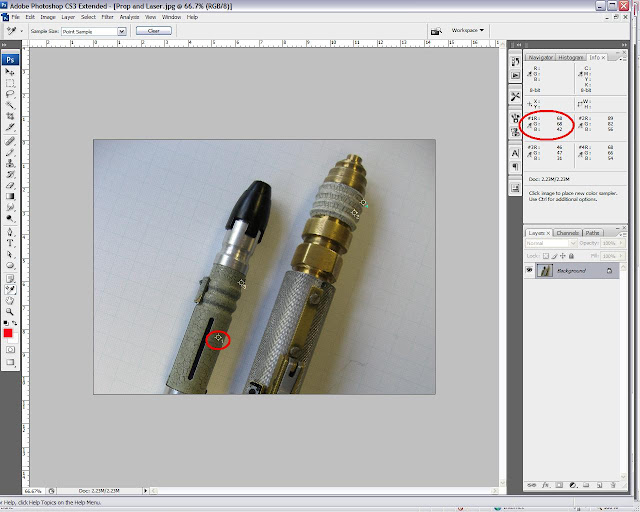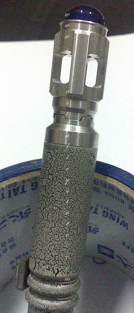 "You guys I am not trying to debunk the guys props. He did a great job on it period. I am dropping the photo proof question because it just does not matter. Here is what I am talking about. The tube that goes up the center of the headpiece one size all the way through. In the photo (and all of them I have seen) all around where the tube goes into the tip (and the body end of the head) is a flat surface. If you look at the replica on the first page of this thread you can see the rings where two sides of that pin are bigger where they screw in from the center post on the bottom and go into the tip of the unit.