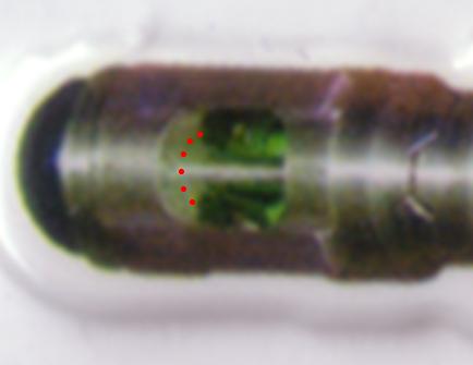 The pencil is pointing to the join I refer to. There is also a join on the upper part of the inner recess too. This is where the ball join screws into the emitter head cage. Here is the head without the emitter cage screwed in showing the LED holder: