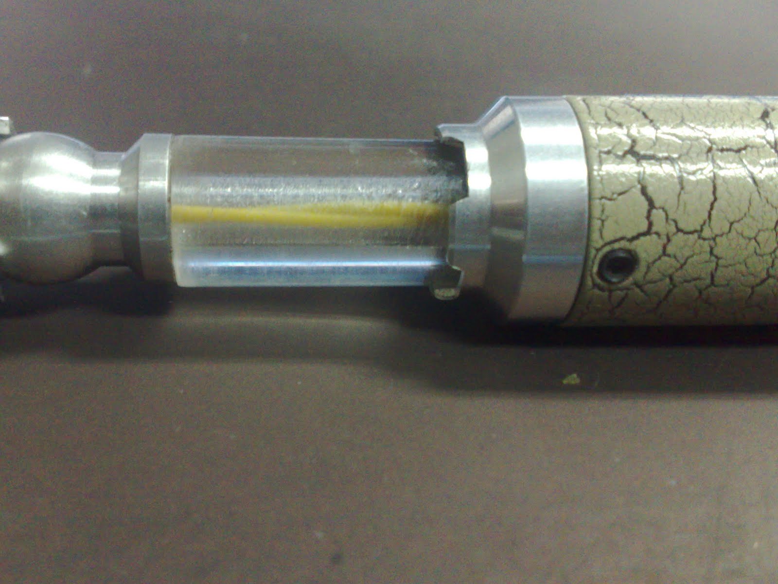 I have been bugged, pestered and cajoled and I've finally had a few moments to relent and film some quick and dirty vids of the Tennant sonic for you. Please note that the color is GREY. It looks a bit yellowish as the lights in my office at 2am are fluorescent and very yellow and the white balance on my Nokia does not handle fluorescent light too well. You'll note I have made a small adjustment to the acrylic neck and deliberately made the bore channel sloppy and scratchy with no oil. On camera it now looks identical to the Tennant neck.