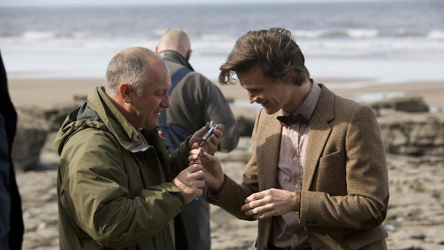Now obviously our replica - in fact, NO replica of this prop by anyone - can be 100% screen accurate in construction and materials to the prop without it coming with the services of the gentleman above. And whilst it may tickle your funny bone to have a chap like that tagging along with spare parts, lube and a real screwdriver everytime you take your 11th sonic for a walk, the novelty will, I assure you, quite quickly wear very thin indeed. Indeed, having seen Season 5 in its entirety, I have come to the disappointing conclusion that this prop is not quite the high quality piece it first appeared.