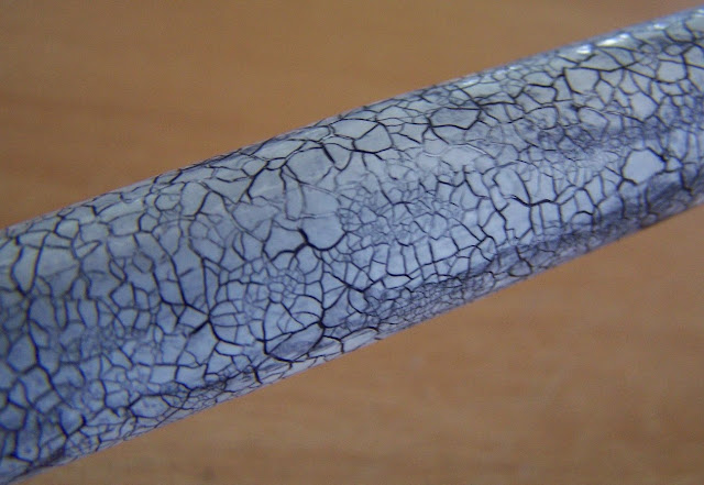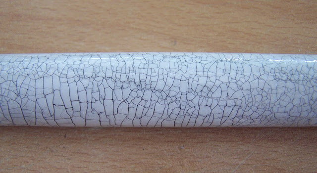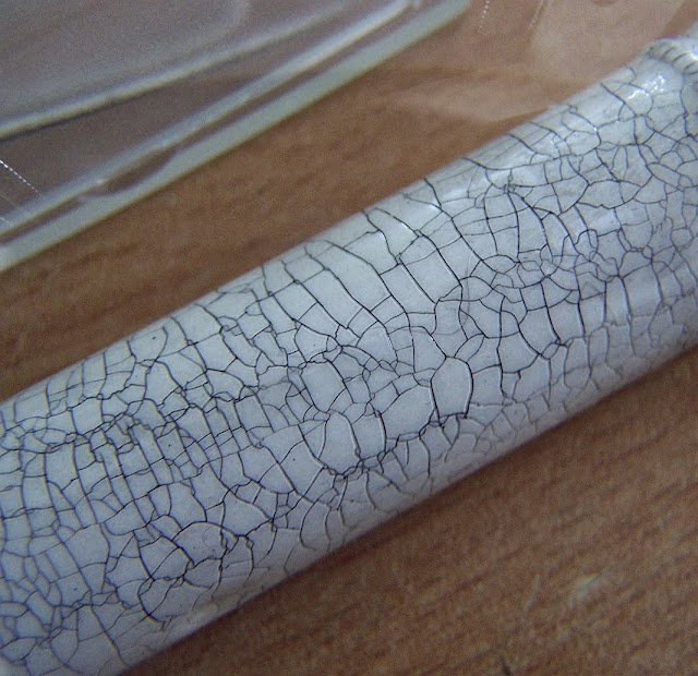 Ok, the result looked good. It was glossy, the cracks were delicate and fine and it had a toughness that the Tim Holtz lacked.