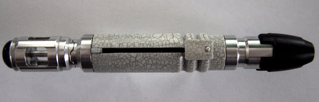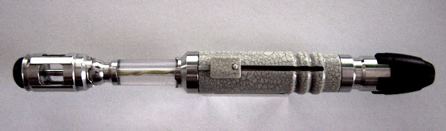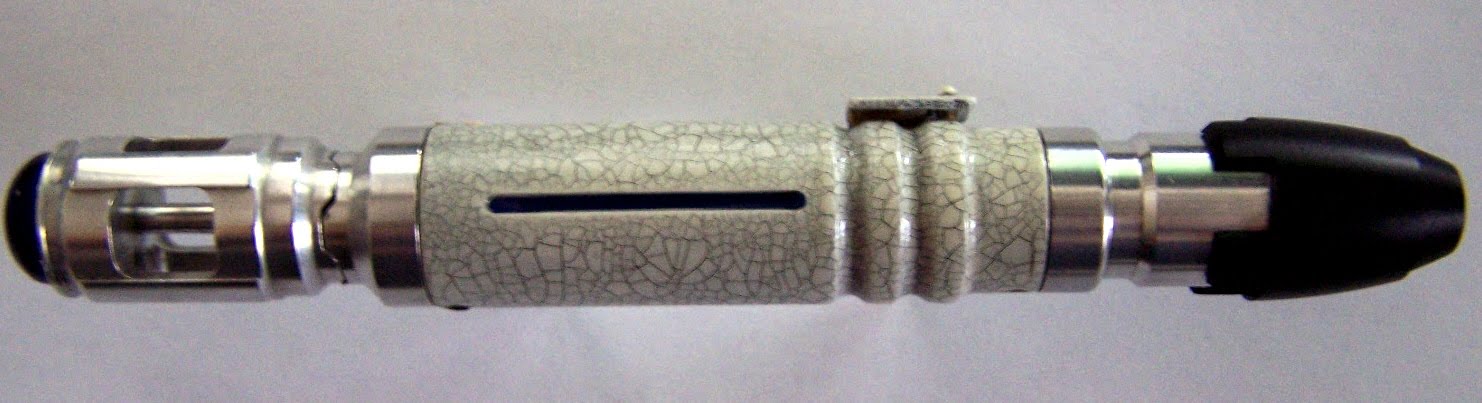...and what a piece of crap it actually is. I don't know what the fuck happened but how did they manage to make a die cast metal replica look more plasticky than the plastic toy? I'm not one to disparage a good effort irrespective of my own personal opinion of the maker, but this thing sucks in a very big way. In fact, I am astonished that despite everything, they seem to have gone out of their way to make it look cheap and nasty especially after touting it as a Hero prop grade replica that was used on the show. Which leads me onto something else I find quite annoying: the ill informed bullshit and deliberate misinformation that is fed to the punters at Tradeshows/Fairs/Conventions by the cocktards that man the manufacturers stands. This is no fantasy: I have seen and heard it first hand. Indeed, during the Toy Fair earlier this year I was told by the rather enthusiastic twit manning the Wow Stuff stand that the replica would be 100% accurate and many prototypes were given to the production team for use as the actual props on the show. And we now know what a bunch of hairy gonads that turned out to be. This even extends to the QMx stand at the recently held ComicCon where bullshit was bandied around so freely I thought I was on a farm. So it appears that the lesson of the day is to take some of these claims with a healthy dose of Sodium Chloride and actually think about the logic of these claims, especially from beardy weirdies waving around sonic screwdriver prototypes. Oh, and a pair of wellington boots wouldn't go amiss either!