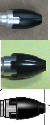 Overall dimensions - I know the dims of the Tennant prop because I measured it. My version is off on several of these dimensions including length and a specific lower diameter (some people will know precisely what diameter I am talking about - I held it over erroneously from my extrapolation of the Season 1-2 sonic). This mistake has been replicated in its entirety by Collins, something that should NEVER have happened if pics of the prop were used. In fact, the dimensions of Collins' build is closer to mine than to the actual prop and I have full sets of blueprints for both. Let me explain what I am talking about. When I built my Tennant sonic I did not have access to the prop so I took the liberty of extrapolating dims and details from the Season 1 prop I did have access to without realising just how different they actually were until I managed to get my hands on a Tennant prop earlier this year. One major error which I always regretted and didn't spot until the parts were made was the fact that the diameter below the ridges was actually wider on the Tennant prop than the Eccleston version. This diameter circled below: