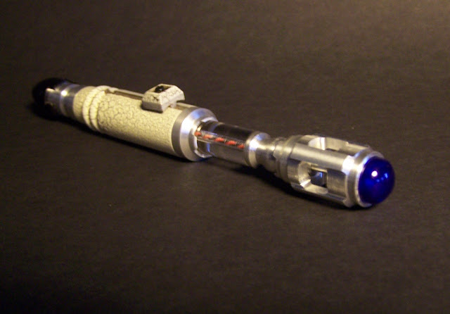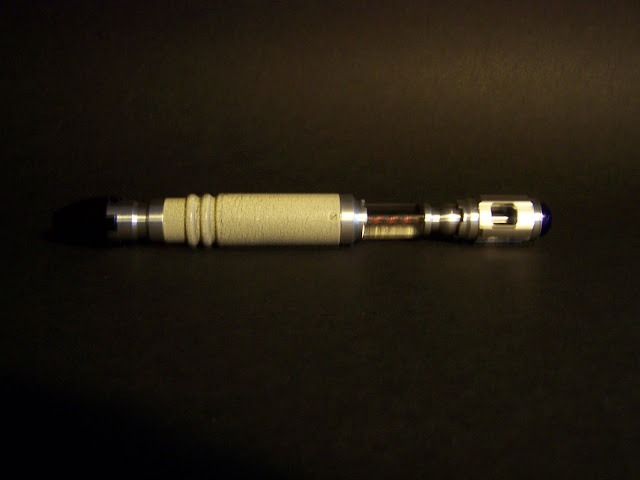 So why is there even any disparety between the paint on the Laser screwdriver and the paint on the sonic? Very easy answer: The angle of the ridges on the laser for one. There is no horizontal surface on the ridges so you end up with stark light or shadowy areas. The other reason is I don't think the laser screwdriver is clearcoated!!! I know this for a fact. Clearcoating darkens and greys out Colony Cream. Here's a pic of my unclearcoated prototype from last year: